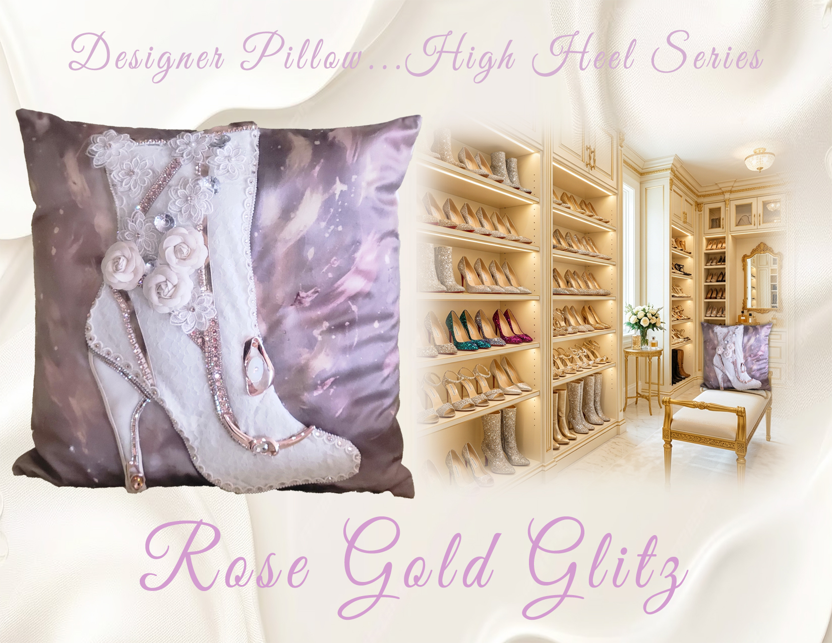 Rose Gold Glitz Designer Pillow (High Heel Series)